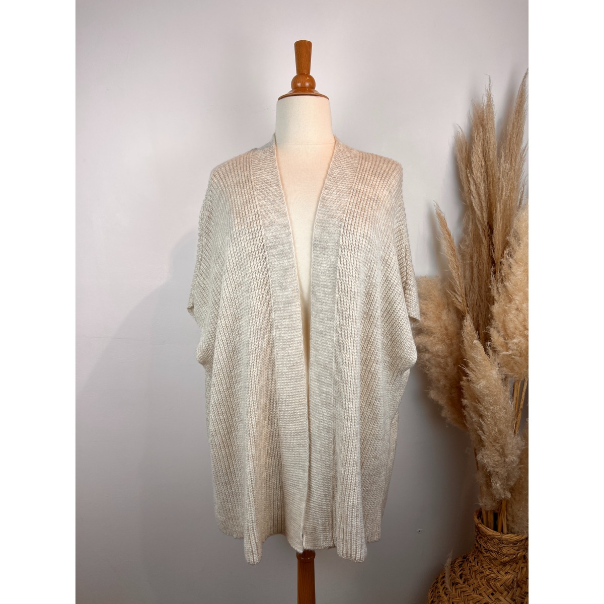 Sa maille épaisse et texturée apporte une touche cosy idéale pour les journées fraîches, tout en laissant une grande liberté de mouvement grâce à ses manches courtes. Facile à superposer sur un sous-pull ou une robe, il devient un incontournable de votre dressing d’automne-hiver.