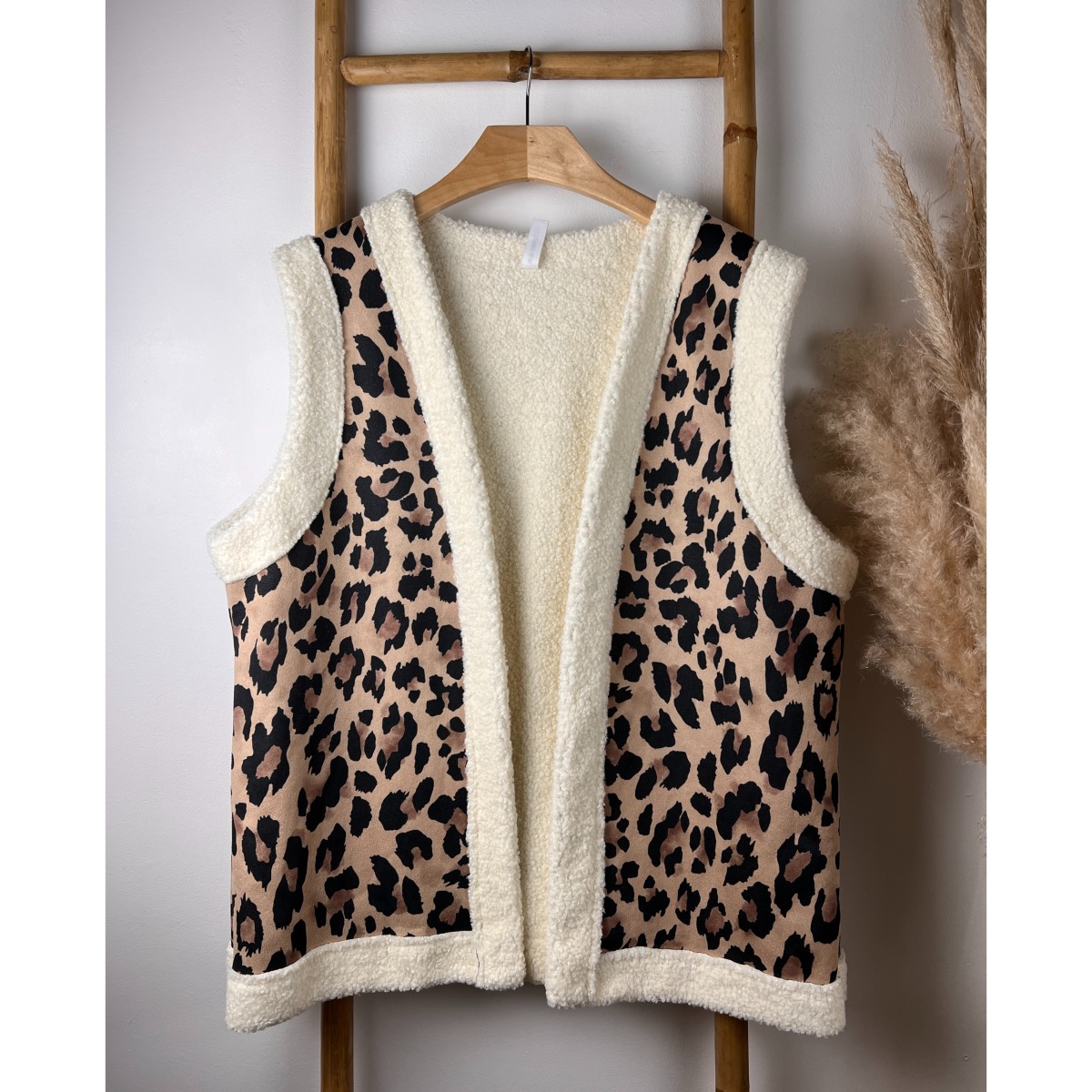 Magnifique gilet sans manches léopard grande taille pour femme, à la croisée du confort et de la mode. Inspiré du gilet de berger traditionnel, ce modèle revisité séduit par son extérieur en suédine effet daim ultra doux et son intérieur doublé imitation mouton, pour une chaleur optimale lors des journées fraîches.