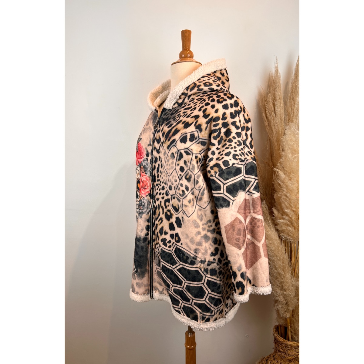 Manteau veste sherpa léopard tête de mort calavera grande taille