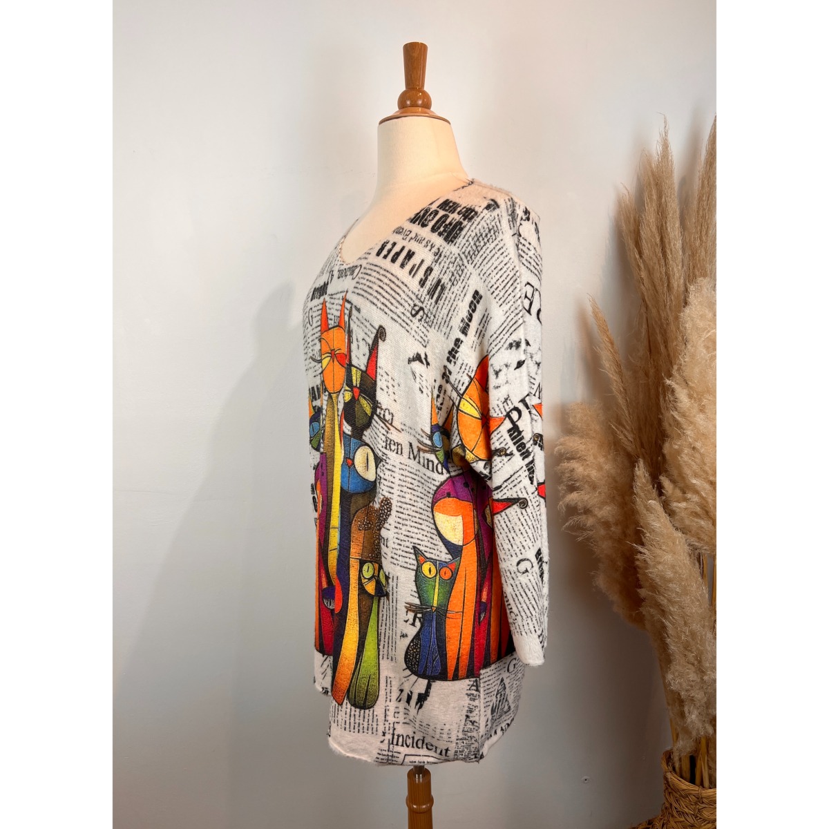 Affirmez votre style avec ce pull grande taille au design original, confectionné dans une maille duveteuse ultra-douce qui allie confort et tendance. Son imprimé unique et audacieux apporte une touche de fantaisie à vos tenues d’hiver, tout en flattant la silhouette grâce à une coupe pensée pour sublimer les courbes.