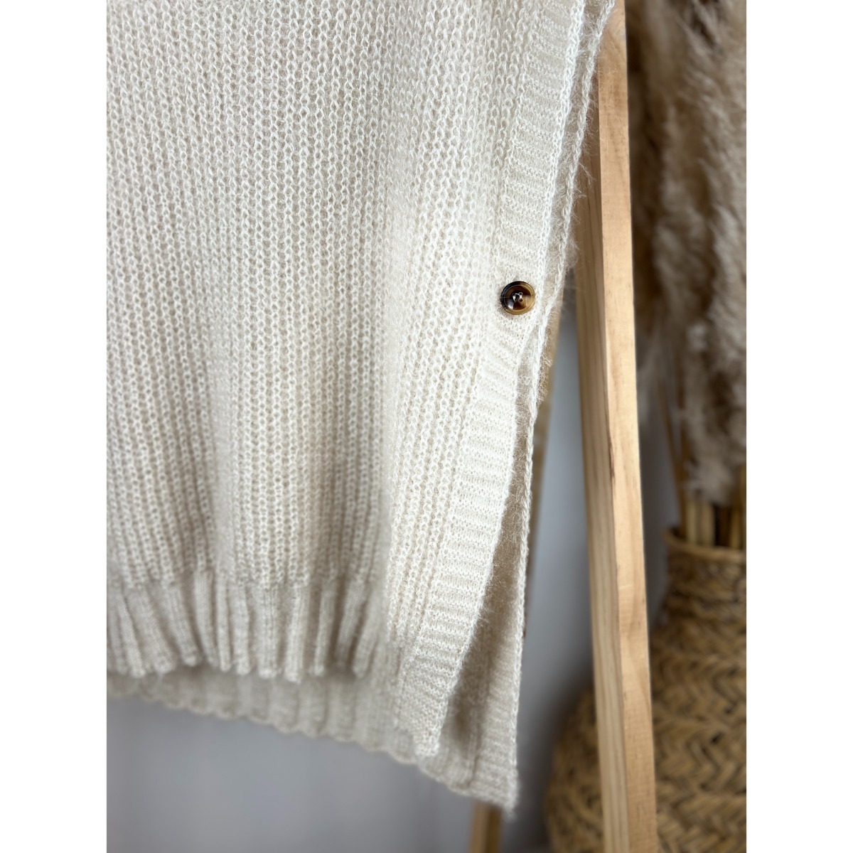 Ce pull sans manches séduit par sa coupe moderne et son col V arrondi qui sublime la silhouette. Confortable et extensible grâce à sa maille mousseuse, il se porte facilement sur une chemise ou un haut léger pour un look chic et tendance. Les boutons sur les côtés ajoutent une finition élégante et pratique, tandis que ses bords côtes structurent joliment la pièce. Disponible en quatre coloris : écru, noir, kaki et noisette.