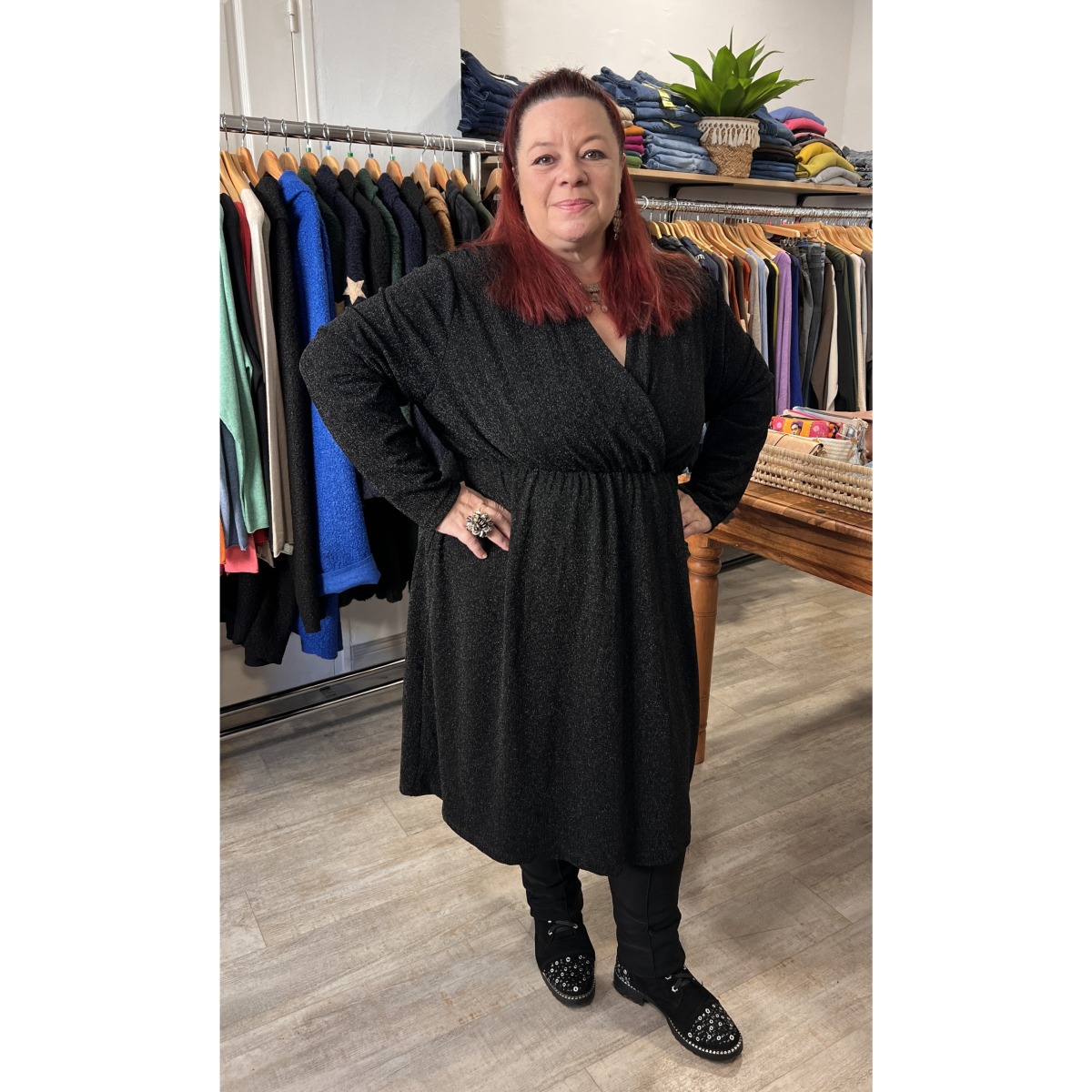 Robe cache-cœur noir pailletée grande taille